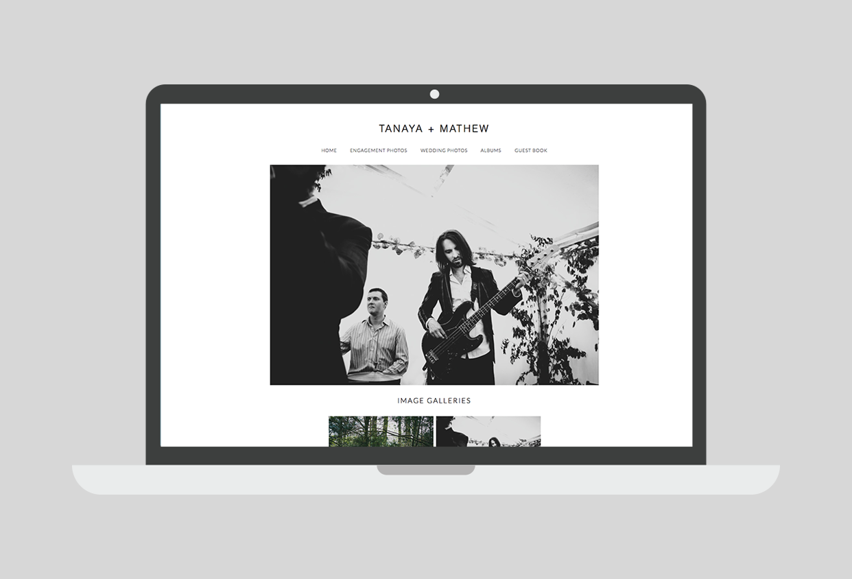 A personal website for your clients, with your photography, your client's album design, a gift registry, a guest book, a link to your own site… oh, and a shopping cart!