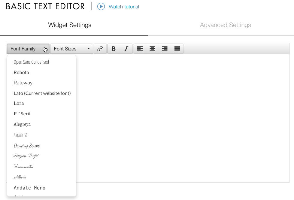 Typography plays an important role in the overall look of websites, so it's no surprise that one of the common things people want to do in Workspace is change fonts. Workspace offers a range that you can select from in the text widgets (as in the graphic) but what if you want something completely different? This tutorial will explain what to do.