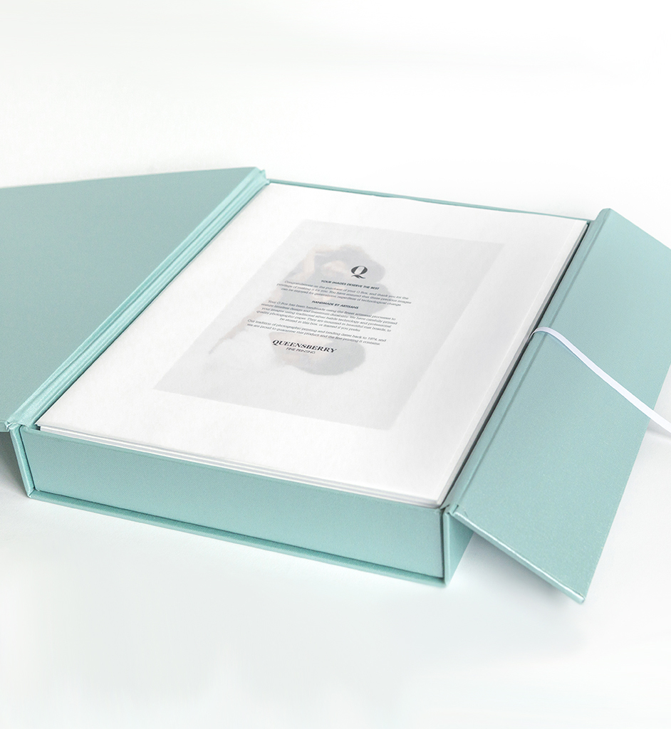 Our Premium Boxes are available in all our Buckram Materials, and linens and made with a beautiful split-lid design, making them the perfect finishing touch for up to 25 matted prints. Each Premium Box is fastened with a hidden magnetic